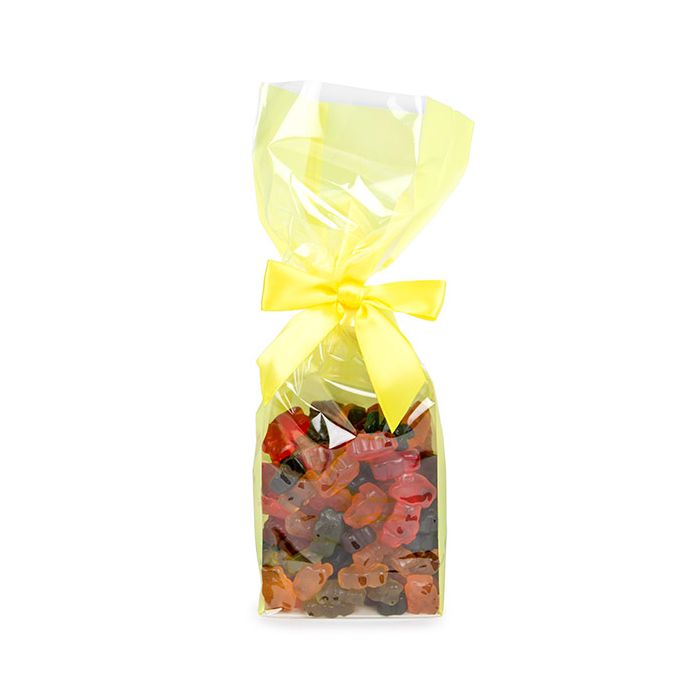 Highlighter Yellow never looked so good! Flat Bottom Gusset Bags are perfect packaging for a variety of items; from baked goods and bulk candy to pet supplies and cosmetics, the possibilities are endless! FGPN16NY measures 8,9 x 5,7 x 30,5 cm and is made of food safe, heat sealable OPP material. These 40 micron bags come open ended for easy loading and feature a pre-inserted white paper insert that creates a stable base for your product. The clear front keeps your product visible while the bright yellow back and side panels add a pop of color! To close these lunch sack-style bags, use a heat sealer, ribbon, pre-tied bow, or fold down the top and secure with a custom label or sticker. Perfect for retail, gifts, favors, and more.