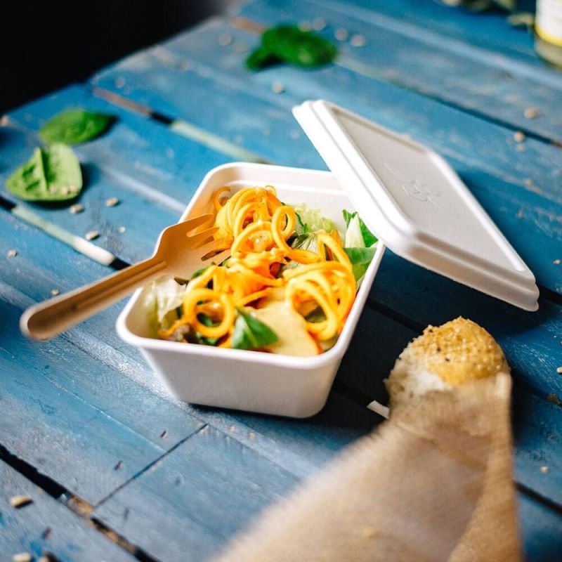 Bowls made of sugar cane are super for takeaway meals. They can withstand temperatures from -25°C to 220°C and are perfect for pasta or rice dishes, for example. The trays water- and fat-resistant and are 100% biodegradable.