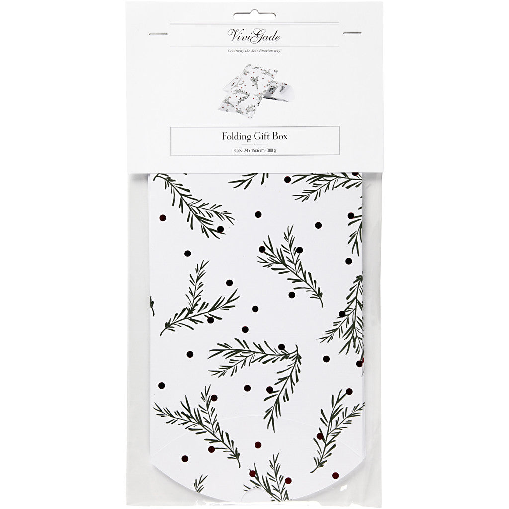 Pillow Box, spruce branch with christmas balls, size 18x15x6 cm, 300 g, green, metallic red, white, 3 pc/ 1 pack [HOB-25357]