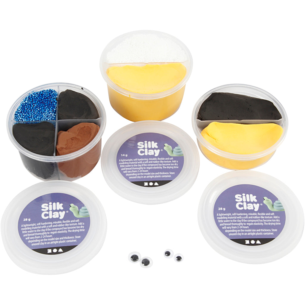 Material kit for modelling Shaun and Bitzer finger puppets from Shaun the Sheep in Silk Clay® and Foam Clay®. Guidance included.