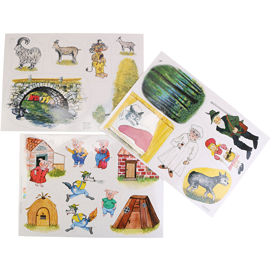 Sturdy card panels with beautiful fairy tale motifs and felt backing. Cut out the figures and place them on the flannelgraph board as the story unfolds. Fairy tale included. Strengthens children’s linguistic development and concentration skills. Ideal for teaching