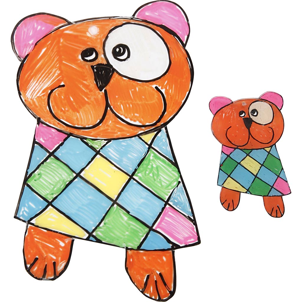These sheets have a glossy surface. When heated in an ordinary oven the plastic shrinks up to 40% in size . Can be decorated with permanent markers. Remember to remove the protective film before use. Can be decorated with solid markers on the glossy.