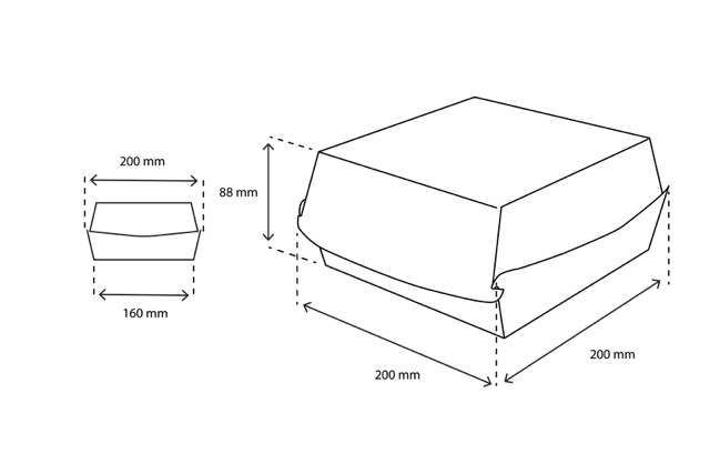 With the size of 20x8.8x20 cm, these boxes are extremely suitable for larger hamburgers, and these are ideal for, for example, take-away but also to pack a hamburger for direct consumption.