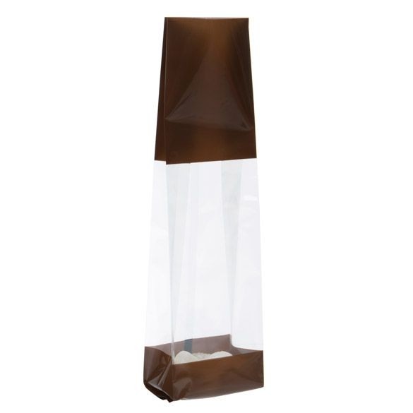 Create unique gifts and party favors With our Printed Gusset Bags. With dimensions that measure 67 x 48 x 273 mm, the G2BN bag is perfect for candy, chocolates, pretzel rods, popcorn, Biscotti, and more. G2BN has a chocolate brown top and bottom, while the middle of the bag is clear. This 40 micron bag is made of laminated material and is bottom-sealed for added sturdiness. Side gussets are ideal for bulky products and expand for your product. Add a colorful ribbon, bow, or twist tie to accessorize this package. This bag is heat sealable for a tamper-resistant closure.
