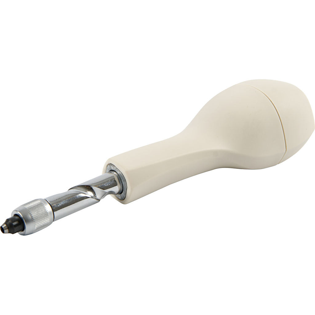 Screw punch in three sizes for punching holes through several layers of paper, heavy card, fabric, veneer, cork, leather, or metal foil. The replaceable tips are conveniently stored in the handle. For extra tips - see item No. 11442.